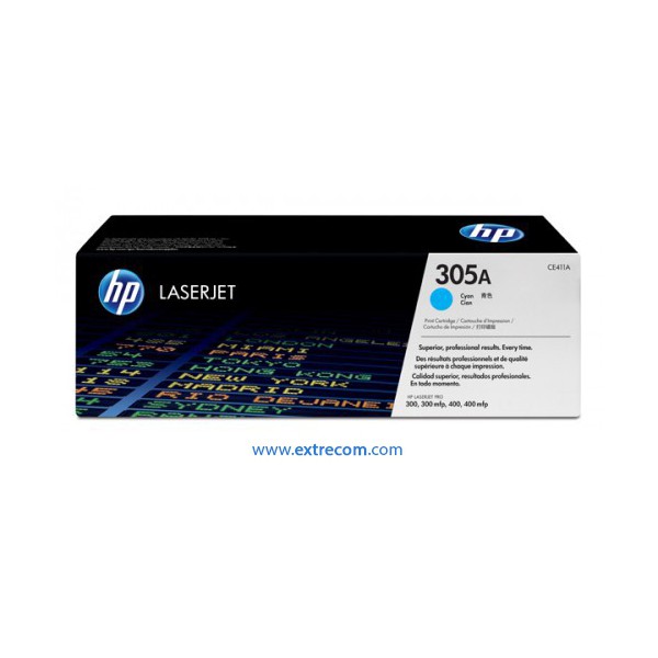Tóner original HP CE411A, con una duración de ~2.600 páginas. Rendimiento por página aproximado según la ISO/IEC 24711/24712. El rendimiento real varía según las imágenes impresas y las condiciones de uso.