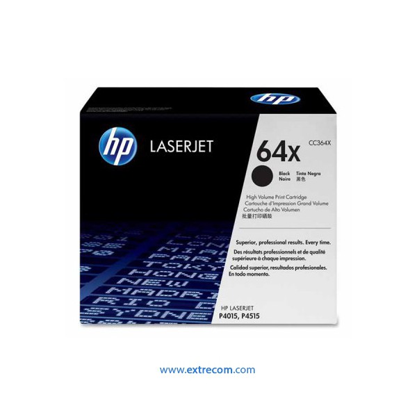 Tóner original HP CC364X, con una duración de ~24.000 páginas. Rendimiento por página aproximado según la ISO/IEC 24711/24712. El rendimiento real varía según las imágenes impresas y las condiciones de uso.