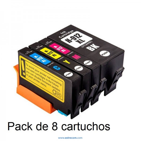 Pack de 8 cartuchos de tinta compatible con HP 912 XL