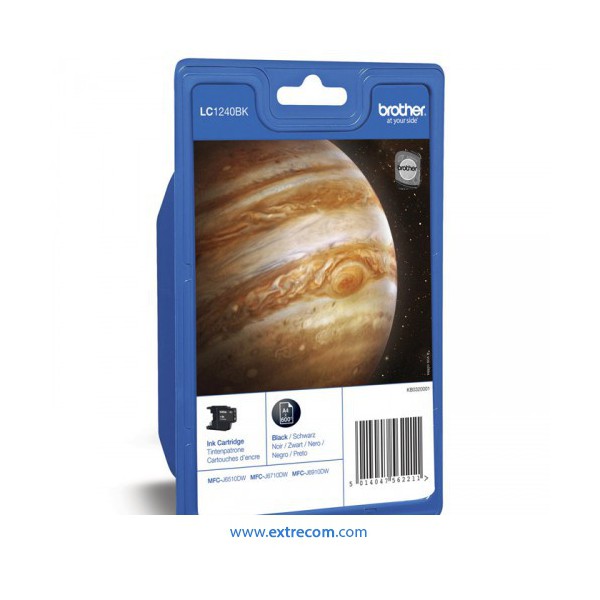 Cartucho original Brother LC1240BK, con un rendimiento de ~600 páginas. Rendimiento por página aproximado según la ISO/IEC 24711/24712. El rendimiento real varía según las imágenes impresas y las condiciones de uso.