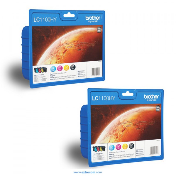 Doble pack de tinta original Brother 1100 H (LC1100HYVALBP x 2), contiene 8 unidades con los colores (cian, magenta, amarillo y negro), es válido para las siguientes impresoras e impresoras multifunción: