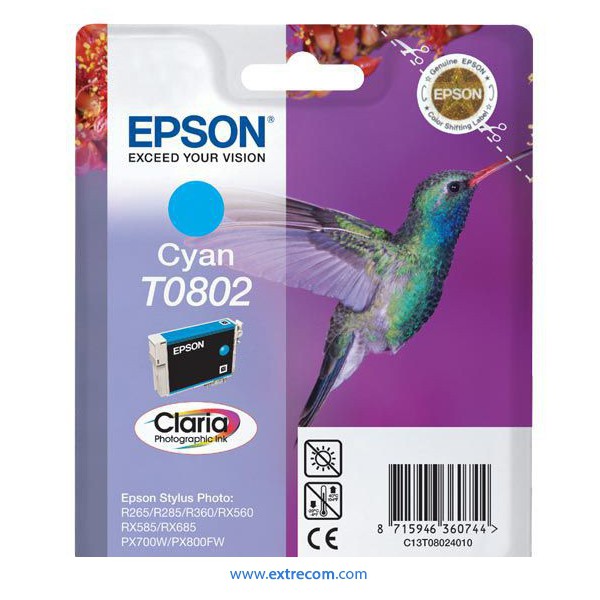 El cartucho de tinta T080240 original Epson T0802 cian, es válido para las siguientes impresoras e impresoras multifunción: