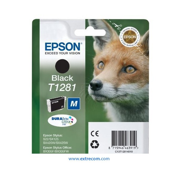 Cartucho de tinta original Epson T128140, con un rendimiento de ~185 páginas. Rendimiento por página aproximado según la ISO/IEC 24711/24712. El rendimiento real varía según las imágenes impresas y las condiciones de uso.
