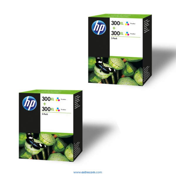 Doble pack de tinta original HP 300 XL color (D8J44AE x 2), contiene 4 cartuchos con 3 colores (cian, magenta y amarillo), es válido para las siguientes impresoras e impresoras multifunción: