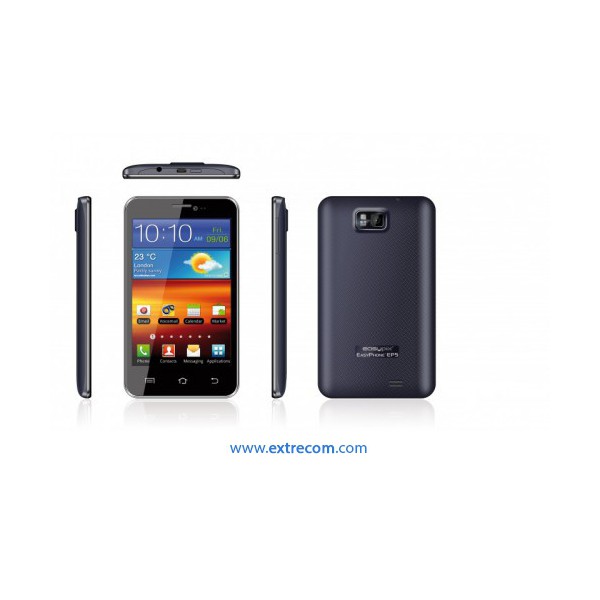 El EasyPix EasyPhone EP5 es un smartphone de gam media dual SIM, muy completo en cuanto a los accesorios que lo acompañan. La pantalla es multitáctil de 5 pulgadas con una resolución de 960x640 píxeles y gráfica Andreno 203. Tiene un procesador dual core a 1,2 Ghz, 1GB de RAM y 4G de capacidad de almacenamiento ampliables con tarjeta de memoria de hasta 32 GB. En cuanto a conectividad y comunicación incorpora Bluetooth, GPS con soporte A-GPS, micro USB, Wifi y ranura para tarjetas de memoria. La cámara trasera tiene 5 megapíxeles de resolución, de la que el fabricante no indica sus prestaciones (si las tiene), y la webcam es de 0,3 megapíxeles. El sistema operativo es Android 4.0.3 ICS e incluye Google Play. Características 12,7cm (5 ") Smartphone Volver Incluyendo cubre en 4 colores y lápiz táctil CPU: Qualcomm 8225 de 1,2 GHz de doble núcleo 1 GB de RAM 4GB construido en memoria 960 x 640 Multi Touch HD IPS de la pantalla LCD Ranura para tarjeta dual SIM Cámara dual: 0.3MP delantero, 5.0MP Volver especificaciones técnicas EasyPhone EP5 12,7cm (5 ") Smartphone CPU Qualcomm 8225 de 1,2 GHz de doble núcleo Sistema operativo Androide 4.1 RAM 1 GB de RAM Memoria interna de 4 GB NAND construido en memoria Pantalla 960 x 640 Multi Touch HD IPS de la pantalla LCD De doble cámara de 0.3MP, 5MP Volver Módulo 3G 3G interno WIFI WiFi 802.11b / g / N Ranura SIM doble tarjeta SIM USB Sí GPS Sí Bluetooth Sí G-Sensor Sí Soporte de Flash Flash 3G WCDMA tecnología incluye GPRS, EDGE, UMTS, HSPA, HSDPA y HSUPA DAS DAS 1,6 W / kg Cuatribanda Slot 1: 3G - WCDMA 850/2100 MHz + GSM 850/900/1800 / 1900MHz Slot 2: 2G - GSM 850/900/1800/1900 MHz Tasa de Absorción Específica (SAR) 1.0 Batería 2150mAh Batería Li-ion recargable y cambiable Tiempo en espera: 550 horas 2G llamando al: 250 minutos 3G llamando al: 230 minutos Tamaño 14,7 x 8,5 x 1 cm Peso 177g
